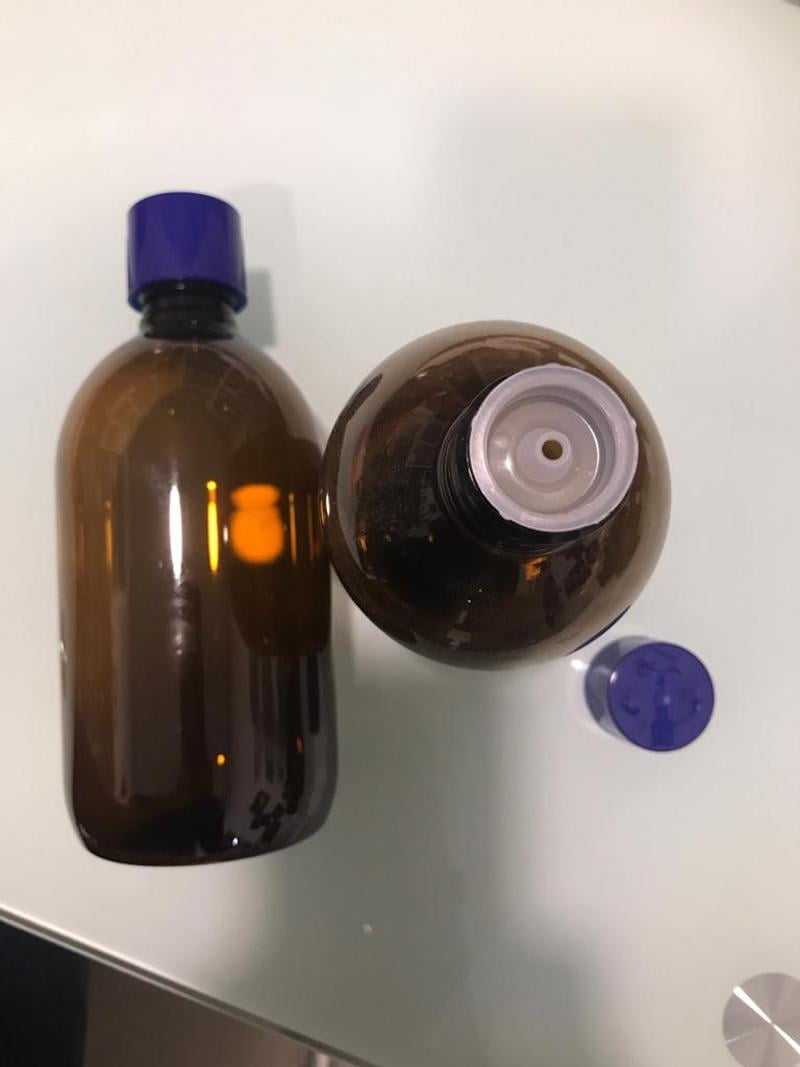 Flacone da 500mL oscurato, per non danneggiare i vostri aromi preferiti, con salva goccia e tappo con sicura antibimbi.